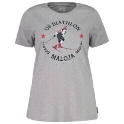 Le t-Shirt féminin de l’équipe des États-Unis de Biathlon est fabrique en coton organique à 100%. Il est destiné à un usage quotidien. Un style très rétro avec une coupe Regular et un col rond sans oublier le print aux couleurs de USA Biathlon.